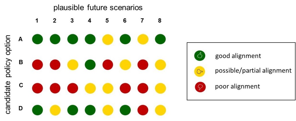 Changing hearts and minds – Whether and to what extent the norms of transport planning practice will change in the months and years ahead remains to be seen. The answer may well rest upon whether or not it is possible to challenge and change the norms of what constitutes acceptable or proportionate analytical robustness and being able to communicate analysis clearly. Proportionality is an important analytical consideration with value to be found in a breadth of examination of policy options within the uncertainty space rather than being drawn prematurely to a narrower in-depth examination of (perhaps fewer) options in the context of fewer do-nothing scenarios (or even only one scenario). We suggest that it is better to be approximately right than precisely wrong when betting on an uncertain future. There is much inertia to overcome from the incumbent paradigm yet early signs are encouraging with a growing number of authorities now exploring this approach.
