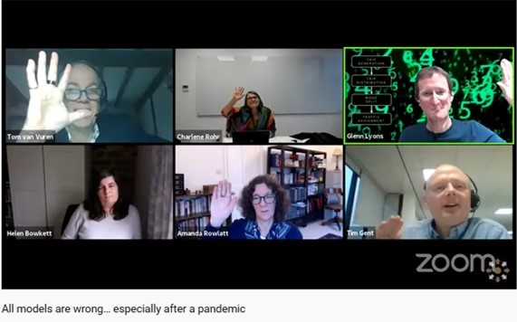 Paul Firmin in the audience was keen to know whether or not COVID will prove significant for the future of modelling. It seemed the right moment to put this to the panel. I asked for a show of hands for those who felt that, indeed, this pandemic period would be significant for shaping the future of modelling. The panel’s reaction is shown below. Helen was hands-down, reflecting a scepticism over whether modelling would really change as a result of COVID in spite of any best intentions, with a reversion instead to simply collecting new data for the same models in the wake of the pandemic.