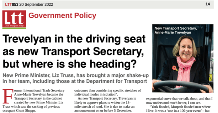 With a shuffle in the UK’s current Cabinet of Government, a new Secretary of State for Transport has been appointed – Anne-Marie Trevelyan MP. Like those before her, she will be hearing from political advisors and technical advisors. The advice may well not be the same.