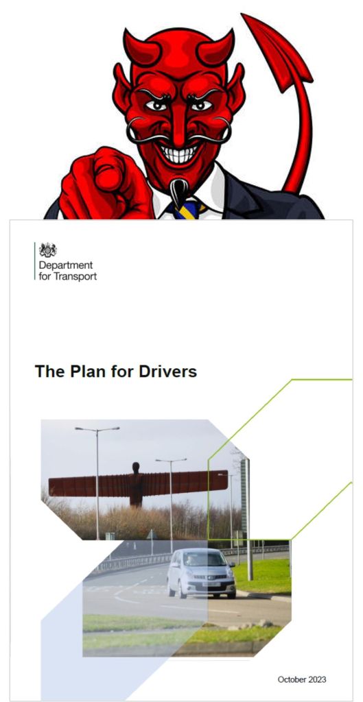 The cover message to this policy paper states that “The plan includes a list of actions that government will pursue with local authorities and others to ensure drivers get a fair deal alongside other road users.” Yes, drivers need a fair(er) deal apparently.